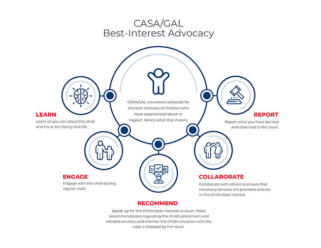 Volunteers work with legal and child welfare professionals, educators and service providers to ensure that judges have all the information they need to make the most well-informed decisions for each child.